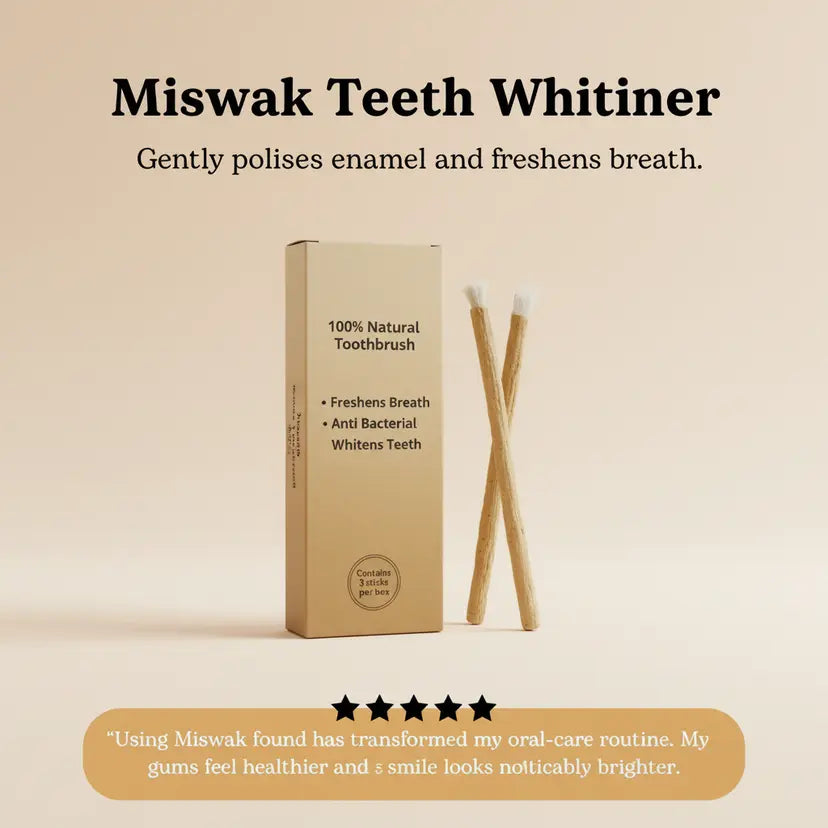 Experience a naturally brighter smile with this innovative teeth whitening solution derived from traditional Miswak. Embrace the power of nature for healthier, whiter teeth without harsh chemicals.